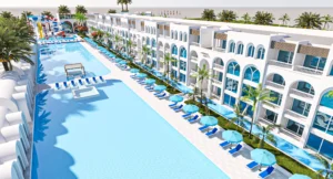 The project offers a comprehensive range of services, including a two-story restaurant, a private reception area, 24/7 housekeeping services, swimming pools, an aqua park, a padel court, and round-the-clock security. Additionally, it includes a commercial mall with 52 shops to meet all residents’ needs.